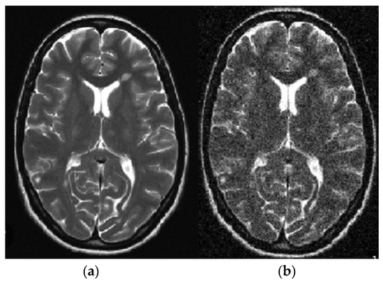 For a standard application in a healthy region, the mean value output of the window throughout a pixel is simply provided above the similarities. If no anomalies are performed, an edge is transferred to the result. This is an essential function of an adaptive filter. The filter uses the window size as the input and manages the balance based on the input image [31]. The subsequent results were used to investigate noise elimination in brain tumor images using the adaptive filter shown in Figure 3. The purpose was to investigate the impact of adaptive noise removal on the edges.