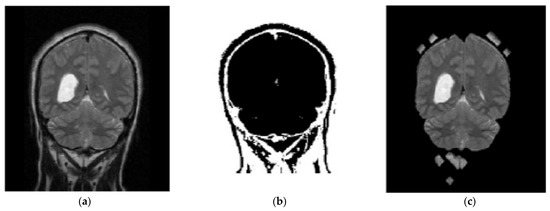 Brain MRI images: (a) normal; (b) binary; (c) after a morphological operation.