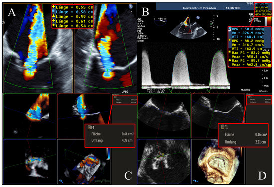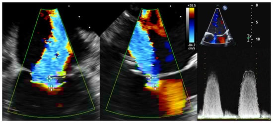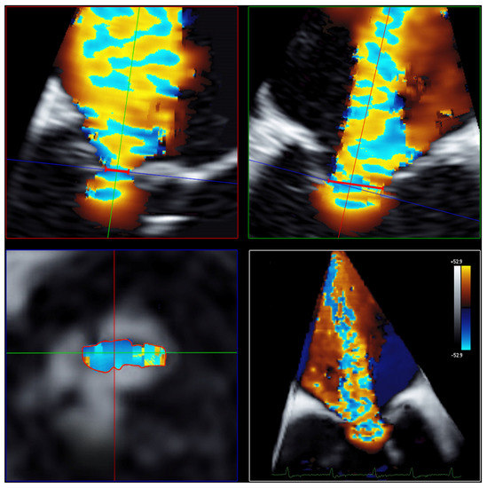 - Altiok, E.; Hamada, S.; van Hall, S.; Hanenberg, M.; Dohmen, G.; Almalla, M.; Grabskaya, E.; Becker, M.; Marx, N.; Hoffmann, R. Comparison of Direct Planimetry of Mitral Valve Regurgitation Orifice Area by Three-Dimensional Transesophageal Echocardiography to Effective Regurgitant Orifice Area Obtained by Proximal Flow Convergence Method and Vena Contracta Area Determined by Color Doppler Echocardiography. Am. J. Cardiol. 2011, 107, 452–458. [Google Scholar] [CrossRef] [PubMed]