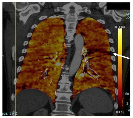 - Si-Mohamed, S.; Chebib, N.; Sigovan, M.; Zumbihl, L.; Turquier, S.; Boccalini, S.; Boussel, L.; Mornex, J.-F.; Cottin, V.; Douek, P. In vivo demonstration of pulmonary microvascular involvement in COVID-19 using dual-energy computed tomography. Eur. Respir. J. 2020, 56, 2002608. [Google Scholar] [CrossRef]