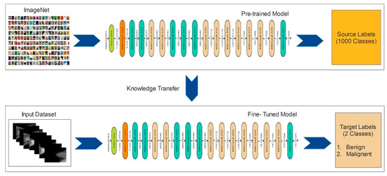 Knowledge transfer from one field or domain to another is called transfer learning. Deep learning involves a great deal of training data, making it difficult and time-consuming to learn specific patterns, especially in medical imaging. A labeled dataset serves as the “source,” which is indicated as: