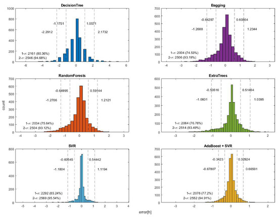 After comparing the results of various selected methods, it can be concluded that the two best results were obtained with SVR and AdaBoost + SVR, as can be seen in Figure 3 and Table 4. This is due to the fact that these two methods had the most test results within of the mean.
