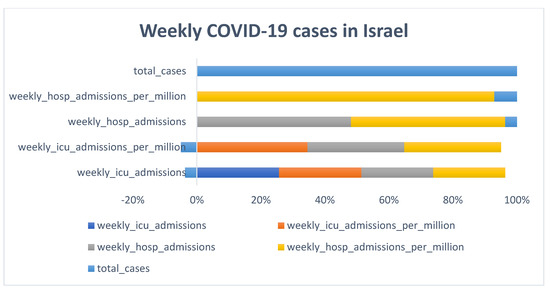 Figure 2, Figure 3, Figure 4 and Figure 5 shows that the numbers of reported cases of COVID-19 in Greece and Israel were significantly correlated with the number of patients admitted to hospitals each week. On the other hand, when compared to Greece, Israel reported a greater number of cases of COVID-19 each week. In addition to this, Greece reported an overall increase in the number of deaths as well as a regular increase in the number of newly reported deaths on a monthly basis, as shown in Figure 2, Figure 3, Figure 4 and Figure 5. There was not even a hint of an inverse correlation found when looking at the input variables, which, as shown in Figure 2, Figure 3, Figure 4 and Figure 5, all contributed to an increase in the number of cases of COVID-19 and the accumulated death cases for Greece and Israel, respectively.