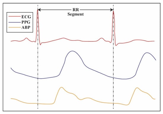 Vital signs are quantitative measurements that assess the function of the body’s organs and systems. Vital signs include heart rate, respiratory rate, blood pressure, temperature, and oxygen saturation. In MIMIC-III, the vital signs (ECG, PPG, ABP, etc.) are collected at regular intervals and stored in a database for further analysis. The data are also used as a tool for predictive analytics and machine learning applications. Figure 3 shows ECG, PPG, and ABP vital signals.