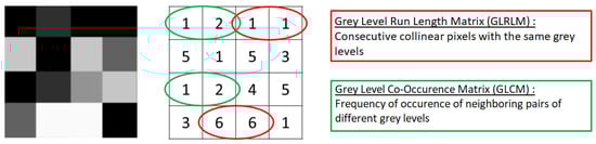 Example of two second-order radiomics features, Gray-Level Run-Length Matrix (GLRLM) and Gray-Level Co-occurrence Matrix (GLCM).
