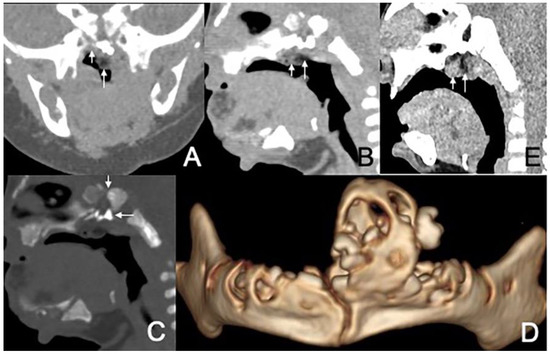 - Çay, A.; Bektas, D.; Imamoglu, M.; Bahadir, O.; Cobanoglu, U.; Sarihan, H. Oral teratoma: A case report and literature review. Pediatr. Surg. Int. 2004, 20, 304–308. [Google Scholar] [CrossRef] [PubMed]