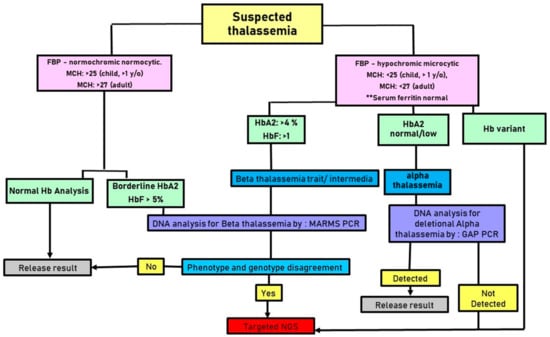 - SSuhaimi, A.; Zulkipli, I.N.; Ghani, H.; Abdul-Hamid, M.R.W. Applications of next generation sequencing in the screening and diagnosis of thalassemia: A mini-review. Front. Pediatr. 2022, 10, 1015769. [Google Scholar] [CrossRef] [PubMed]