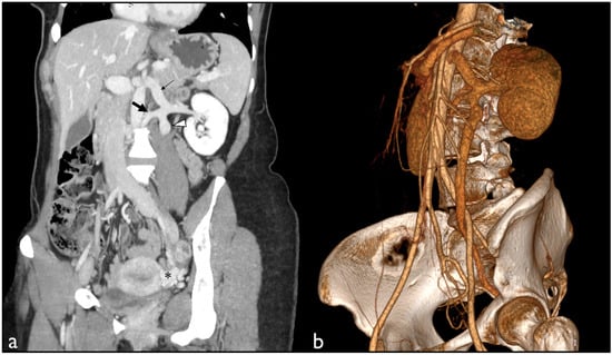 - Özkan, M.B.; Bilgici, M.C.; Hayalioglu, E. Anterior and Posterior Nutcracker Syndrome Accompanying Left Circumaortic Renal Vein in an Adolescent. Case Report. Arch. Argent. Pediatr. 2016, 114, e114–e116. Available online: http://www.sap.org.ar/docs/publicaciones/archivosarg/2016/v114n2a24e.pdf (accessed on 20 March 2023). [PubMed]