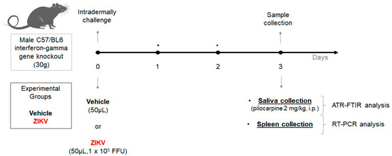 2.2. Induction of ZIKV Infection, Saliva, and Sample Collection