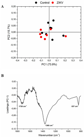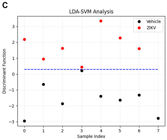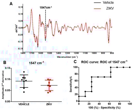 Oliveira, S.W.; Cardoso-Sousa, L.; Georjutti, R.P.; Shimizu, J.F.; Silva, S.; Caixeta, D.C.; Guevara-Vega, M.; Cunha, T.M.; Carneiro, M.G.; Goulart, L.R.; et al. Salivary Detection of Zika Virus Infection Using ATR-FTIR Spectroscopy Coupled with Machine Learning Algorithms and Univariate Analysis: A Proof-of-Concept Animal Study. Diagnostics 2023, 13, 1443. https://doi.org/10.3390/diagnostics13081443