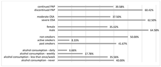 Our results have clinical and practical significance. A major finding of our analysis is similar PA levels and nutritional choices in adherent and nonadherent patients, despite differences regarding QoL and psychological status. Further studies are needed to understand the reasons for limited PA in adherent OSA patients. These patients should not be viewed as “compliant”—sustained efforts should be made in order to promote adherence to lifestyle changes in all OSA patients. We emphasize the need for the development of comprehensive cardio-pulmonary rehabilitation programs to address both somatic and psychological OSA consequences and correct modifiable cardiovascular risk factors [85]. Another key result is the importance of the financial factor in the decision to discontinue PAP. Governmental financial policies regarding PAP use (device funding and health care coverage) could significantly increase treatment compliance, especially in low- and middle-income countries.