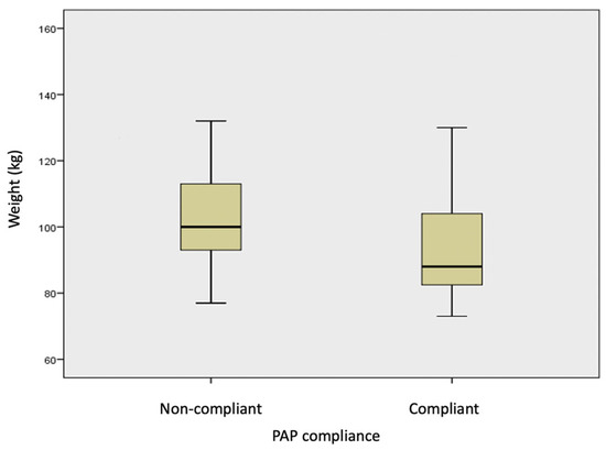 Changes in weight—baseline versus follow-up. PAP: positive airway pressure.