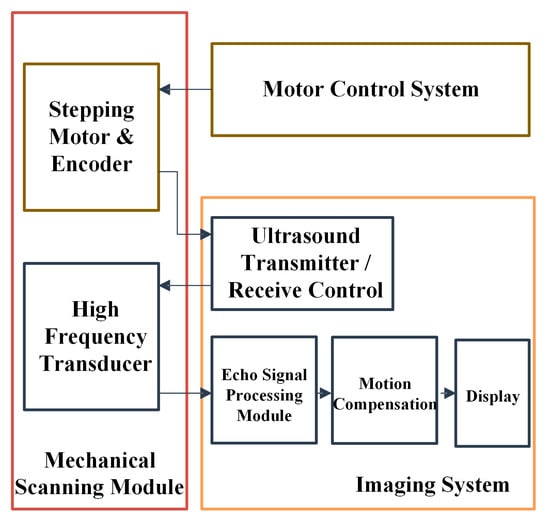 Our high-frequency mechanical scanning ultrasound imaging system is mainly composed of three parts: mechanical scanning structure, high-frequency ultrasound probe, and imaging system.