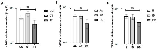 3.2. Distribution of Genotype and Allelic Frequencies of VEGFA Polymorphisms