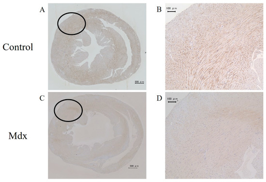 - Van Erp, C.; Loch, D.; Laws, N.; Trebbin, A.; Hoey, A.J. Timeline of cardiac dystrophy in 3-18-month-old MDX mice. Muscle Nerve 2010, 42, 504–513. [Google Scholar] [CrossRef]