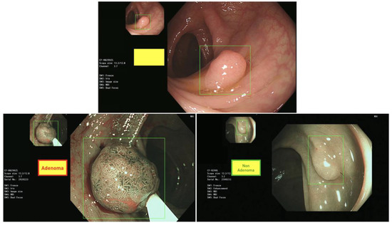 The development of AI technology, particularly DL algorithms, has contributed to the advancement of biomedical research and wider applications in recent decades [12,13,27]. Computer-aided detection (CAD) systems based on DL models trained on imaging datasets are attracting the particular attention of biomedical researchers. Most CAD systems are not developed as stand-alone tools but are usually integrated or deployed into devices for clinical applications. Polyp detection and classification is a field in which CAD systems have been extensively studied by both ML and conventional approaches, and various models/tools have been proposed in this competitive research domain [22,27,28,29,30]. The critical metrics to evaluate a model’s performance for polyp detection and classification are usually based on the sensitivity and specificity for polyp localization and the classification rate for adenomatous versus non-adenomatous polyps. In the current study, our DL models achieved a state-of-the-art sensitivity and specificity of 0.9709 and 0.9701, respectively, for the detection model. The adenoma classification also reached a high AUC value of 0.9989. The missing rate of adenoma classification, especially the interobserver variability, is noteworthy [31]. In our study, we recruited three experienced endoscopists to evaluate the images, and we sought to obtain consensus on the polyp areas that were eventually used for the DL model training and evaluation. Training the models using rigorously selected images should enable them to prevent or reduce the false-positive or false-negative rates when used by physicians for real-time colonoscopy monitoring. The system should also help reduce the detection and procedure times for physicians.