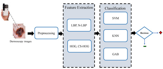 - Bakheet, S. An SVM framework for malignant melanoma detection based on optimized HOG features. Computation 2017, 5, 4. [Google Scholar] [CrossRef]