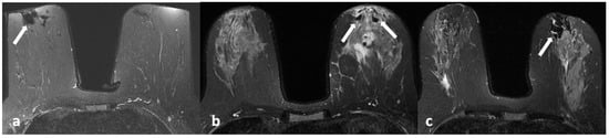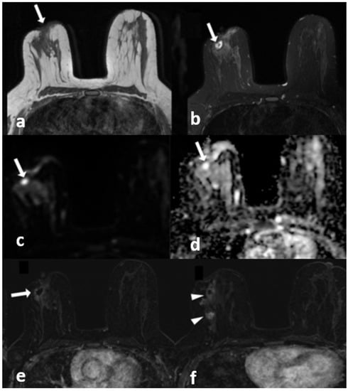 - Renz, D.M.; Baltzer, P.; Böttcher, J.; Thaher, F.; Gajda, M.; Camara, O.; Runnebaum, I.B.; Kaiser, W.A. Magnetic resonance imaging of inflammatory breast carcinoma and acute mastitis. A comparative study. Eur. Radiol. 2008, 18, 2370–2380. [Google Scholar] [CrossRef]