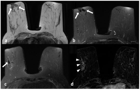 - Kalli, S.; Freer, P.E.; Rafferty, E.A. Lesions of the skin and superficial tissue at breast MR imaging. Radiographics 2010, 30, 1891–1913. [Google Scholar] [CrossRef]