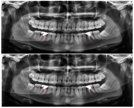 - Perschbacher, S. Interpretation of panoramic radiographs. Aust. Dent. J. 2012, 57, 40–45. [Google Scholar] [CrossRef]