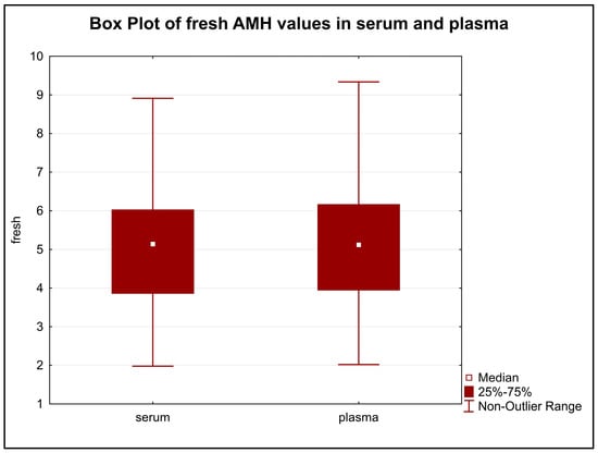 The difference in the distribution of initial AMH values in serum and plasma were statistically insignificant (p = 0.8858) (Figure 1).