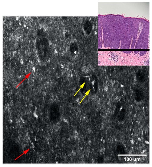 - Shahriari, N.; Grant-Kels, J.M.; Rabinovitz, H.; Oliviero, M.; Scope, A. In vivo reflectance confocal microscopy image interpretation for the dermatopathologist. J. Cutan. Pathol. 2018, 45, 187–197. [Google Scholar] [CrossRef] [PubMed]