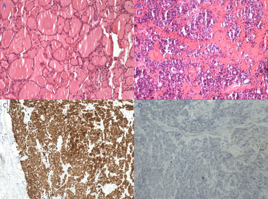- Poli, R.; Scatolini, M.; Grosso, E.; Maletta, F.; Gallo, M.; Liscia, D.; Nelva, A.; Cesario, F.; Forte, G.; Metovic, J.; et al. Malignant struma ovarii: Next-generation sequencing of six cases revealed Nras, Braf, and Jak3 mutations. Endocrine 2020, 71, 216–224. [Google Scholar] [CrossRef]