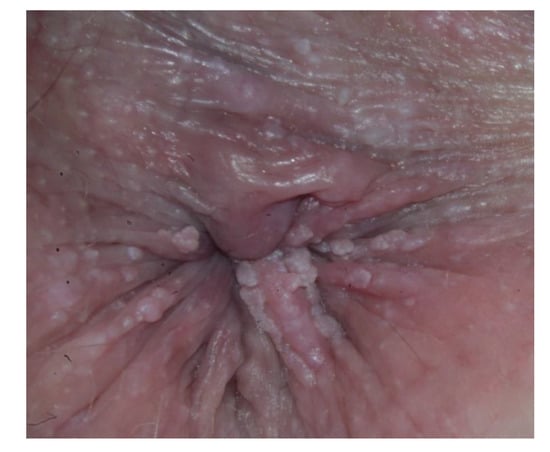 - Pennycook, K.B.; McCready, T.A. Condyloma Acuminata, in StatPearls; StatPearls Publishing LLC.: Treasure Island, FL, USA, 2022. [Google Scholar]