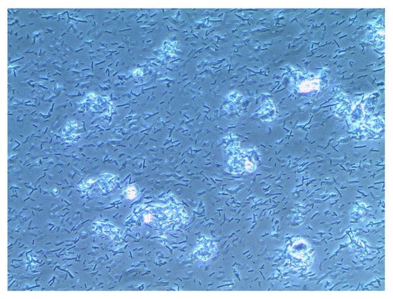 Trichomonads are protozoa that exist in different species as parasites in water, animals, and humans []. A trichomonas vaginalis infection initially causes a marked reproduction of protozoa in the vagina and a subsequent inflammatory reaction. The cervical glands release immunoglobulins which trigger the inflammatory reaction. As this reaction does not occur after hysterectomy, the trichomonads are able to grow unchecked. In the presence of bacterial vaginosis, the pH increases from 4.5 to 5.5. This is a “feel-good pH” for trichomonads, which is the reason why they occur more commonly in the presence of bacterial vaginosis []. Typical symptoms include a greenish-yellow discharge, itching, burning in the vestibulum, dyspareunia, dysuria, or cervix bleeding on contact. Clinically, however, the infection is asymptomatic in half of cases; this is equally true of men and women []. Trichomonads are identified directly on a wet mount of vaginal discharge. Under the microscope, one finds increased leukocytes, and trichomonads double the size of leukocytes. Trichomonads are pear-shaped, with a horned process at one end and four flagella at the other end (Figure 4) []. In comparison, Figure 5 shows a physiological wet mount with lactobacilli (Döderlein bacilli) and vaginal epithelial cells. The wet mount should be viewed soon after sampling because trichomonads do not survive cold temperatures or the incidence of light []. The sensitivity is strongly dependent on the investigator. Therefore, it would be advisable to obtain a swab from the vagina or urethra or a urine sample and demonstrate trichomonads by means of a nucleic acid amplification test (NAA) or a multiplex PCR or a biochemical bedside test [].