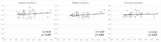 - Ferros, I.; Mora, M.J.; Obeso, I.F.; Jimenez, P.; Martinez, I.A. Relationship between the cranial base and the mandible in artificially deformed skulls. Orthod. Craniofac. Res. 2016, 19, 222–233. [Google Scholar] [CrossRef]
