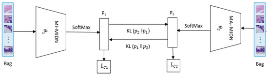 The analysis model is accomplished separately in typical circumstances, which does not allow for the diagnostic model’s full potential to be tapped. The goal is to train two models in a cohort using the DML schema as shown in Figure 4. [29]. As illustrated in Figure 5, and are two indistinguishable entities (networks) of the model. Two same bags are input into the DML structure at a similar moment; are the outputs of every individual network.