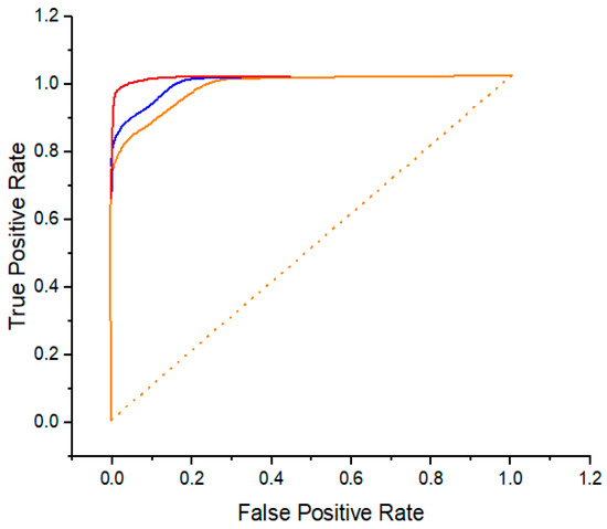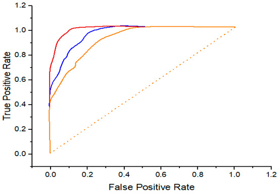 Figure 9 displays the ROC curve and AUC value for the PUH dataset. The AUC of the DML using the PUIH dataset is critical in the MA-MIDN model’s performance (the MA-MIDN-DML model and MA-MIDN-Ind model). It has the potential to demonstrate the correctness of the model while also increasing the generalization capacity of the model.