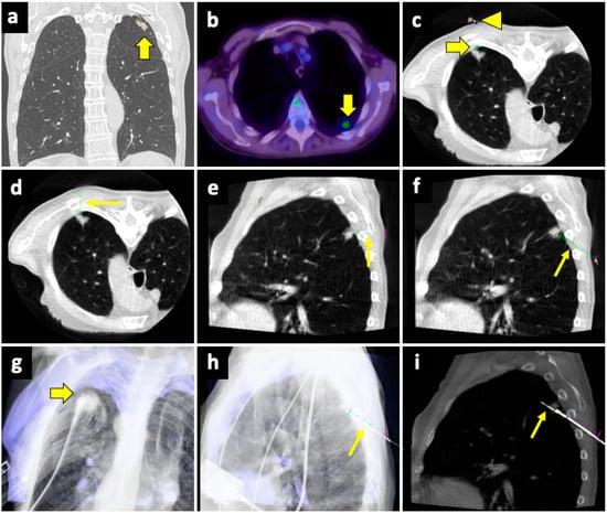 - Cerci, J.J.; Bogoni, M.; Cerci, R.J.; Masukawa, M.; Neto, C.C.P.; Krauzer, C.; Fanti, S.; Sakamoto, D.G.; Barreiros, R.B.; Nanni, C.; et al. PET/CT-Guided Biopsy of Suspected Lung Lesions Requires Less Rebiopsy Than CT-Guided Biopsy Due to Inconclusive Results. J. Nucl. Med. 2021, 62, 1057–1061. [Google Scholar] [CrossRef] [PubMed]