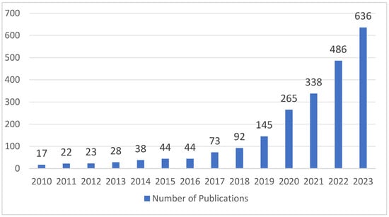 AI-related publications in the field of orthopedics from 2010 to 2023.