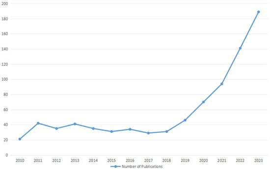 AI-related publications in the field of shoulder pathology from 2010 to 2023.