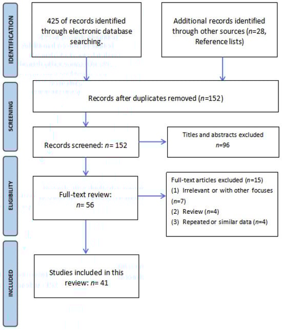 The screening process is shown in Figure 5. After the literature screening, 41 studies were included in this review.
