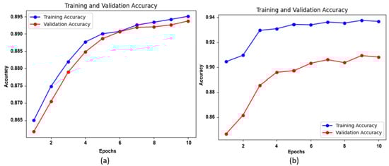 Training–validation accuracy of (a) XGBoost and (b) random forest.