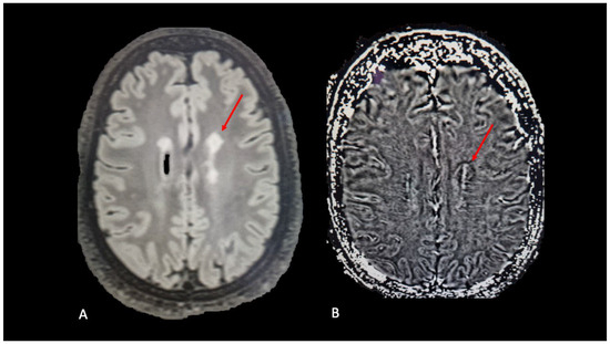 In clinical investigations, conventional MRI has served to confirm diagnoses and evaluate the efficacy of disease-modifying treatments (DMTs) by quantifying new lesion formation and volumes [13,14]. Robust correlations have been established between the impact of new DMTs on new lesion formation and relapse rates, aiding in the exploration of the efficacy of novel therapies in phase II trials [15,16]. The term “no evidence of disease activity”, comprising the absence of clinical relapses, progression on the expanded disability status scale (EDSS), and MRI activity (e.g., new or enlarging T2 lesions, gadolinium-enhancing lesions, and potential brain atrophy), has been pivotal in assessing treatment outcomes, extending from clinical trials to practical clinical settings [17,18].