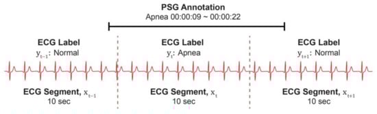 Creating labels for 10 s segments from the PSG annotation. PSG: polysomnography; ECG: electrocardiography.