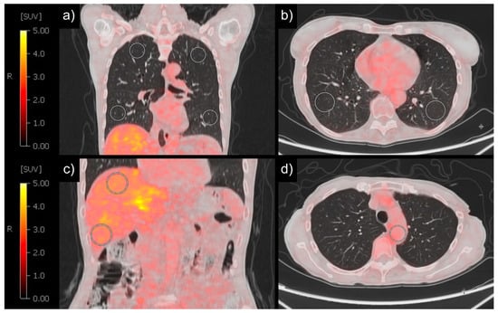 - Thie, J.A. Understanding the standardized uptake value, its methods, and implications for usage. J. Nucl. Med. 2004, 45, 1431–1434. [Google Scholar] [PubMed]