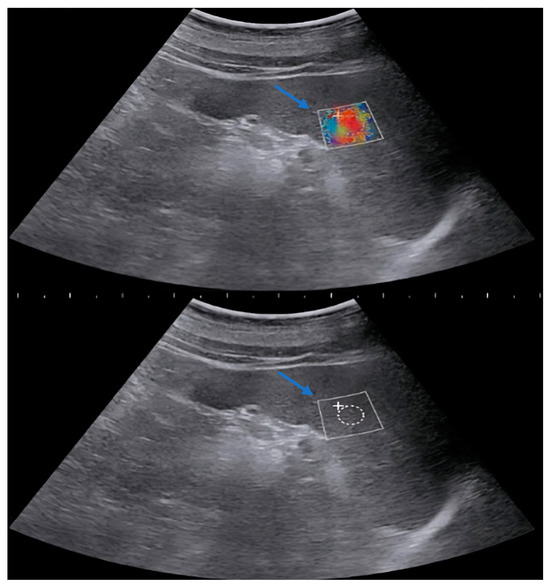 Ultrasound elastography has shown significant advancements in recent years. Quantitative methods, such as transient elastography, acoustic radiation force impulse, and shear wave elastography, have superseded qualitative methods [15,25]. Due to the spleen’s surface location, sonoelastography can provide precise measurements of its hardness with high reliability [26]. Currently, numerous researchers are studying the alterations in spleen elasticity among individuals afflicted with hepatitis B virus or hepatitis C virus, as well as those with liver fibrosis, portal hypertension, esophageal varices, or myelofibrosis [16,18,27,28]. This paper examines the function and present condition of accessible qualitative ultrasound elastography techniques, encompassing recent developments in the assessment of spleen stiffness and its clinical usefulness. Research findings indicate that there is a direct relationship between the stiffness of the spleen and the presence of liver fibrosis. This information is valuable in assessing the extent of fibrosis according to the METAVIR scoring system [29]. Patients with hepatitis B virus or hepatitis C virus see an increase in spleen stiffness, even if the elasticity of the liver remains unchanged. Moreover, it is valuable in the diagnosis of portal hypertension or the prediction of the presence of esophageal varices [18]. Furthermore, spleen sonoelastography can assist in the identification of suitable candidates for liver transplantation and in determining the optimal approach for portal vein reconstruction in patients with biliary atresia following Kasai portoenterostomy [30]. Spleen stiffness in myelofibrosis is directly related to bone marrow fibrosis and can be utilized as a measure to evaluate the effectiveness of treatment [31]. Spleen sonoelastography is additionally valuable for monitoring the functionality of transjugular intrahepatic portosystemic shunts [26].