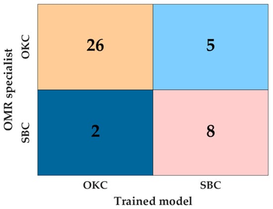 3.3. Cross-Tabulation of OMR Specialists and AI Results