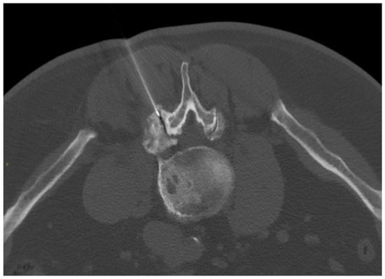 - Vanderschueren, G.M.; Obermann, W.R.; Dijkstra, S.P.D.; Taminiau, A.H.M.; Bloem, J.L.; van Erkel, A.R. Radiofrequency Ablation of Spinal Osteoid Osteoma: Clinical Outcome. Spine 2009, 34, 901–903. [Google Scholar] [CrossRef] [PubMed]