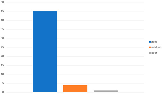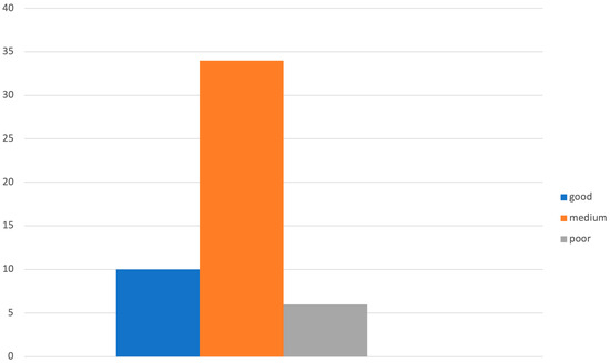 Concerning drugs that can be used in thromboembolic prophylaxis, we can found that respondents have good knowledge of low-molecular-weight heparin (90%) and average knowledge of dicumarolics (40%), DOACs (68%), and antiplatelets (40%) (Figure 4 and Figure 5).