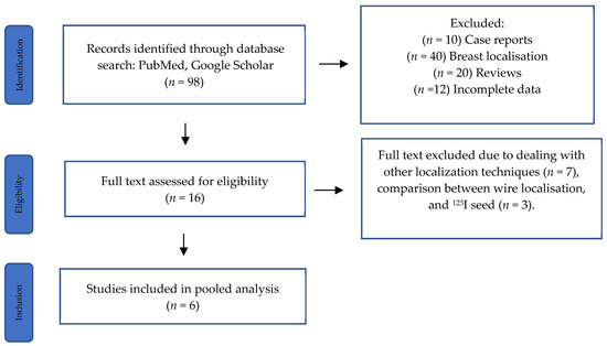 - Ferreira, H.H.J.; de Souza, C.D.; Pozzo, L.; Ribeiro, M.S.; Rostelato, M. Radioactive Seed Localization for Nonpalpable Breast Lesions: Systematic Review and Meta-Analysis. Diagnostics 2024, 14, 441. [Google Scholar] [CrossRef] [PubMed]