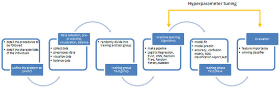 Machine learning (ML), as a branch of artificial intelligence, is instrumental in crafting models that learn from data autonomously, without direct programming. Among these, tree-based ML algorithms are particularly appreciated for their straightforwardness and clarity, making the decision paths visual and interpretable. Decision trees stand out by mapping decisions through nodes and labels, ensuring not only high accuracy in classification but also clear presentation of information, which is crucial in healthcare decision-making [30,31]. However, challenges such as overfitting can arise from small data sets. Techniques like random forests and boosted decision trees are therefore employed to overcome these hurdles, offering improved prediction accuracy through a detailed examination of the interconnections among variables in the dataset [32].
