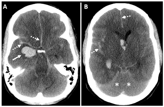 - Thomas, E.O.; Manara, A.; Dineen, R.A.; Mortimer, A.; Aziz, O.; Dean, P.; Elliott, P.; Summers, D.M.; Whitfield, P.C.; Hutchinson, P.J.; et al. The use of cerebral computed tomographic angiography as an ancillary investigation to support a clinical diagnosis of death using neurological criteria: A consensus guideline. Anaesthesia 2023, 78, 330–336. [Google Scholar] [CrossRef] [PubMed]