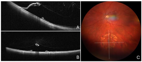 - Chu, R.L.; Pannullo, N.A.; Adam, C.R.; Rafieetary, M.R.; Sigler, E.J. Morphology of Peripheral Vitreoretinal Interface Abnormalities Imaged with Spectral Domain Optical Coherence Tomography. J. Ophthalmol. 2019, 2019, 3839168. [Google Scholar] [CrossRef]