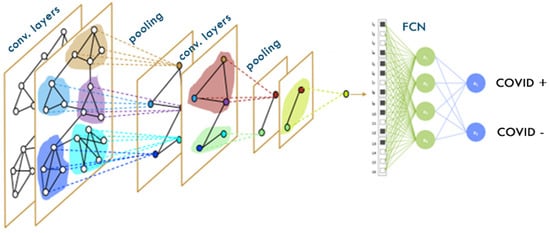 - Liang, X.; Zhang, Y.; Wang, J.; Ye, Q.; Liu, Y.; Tong, J. Diagnosis of COVID-19 pneumonia based on graph convolutional network. Front. Med. 2021, 7, 612962. [Google Scholar] [CrossRef]
