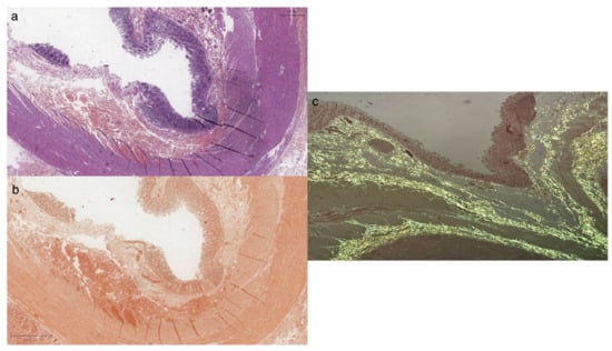 - Alshehri, S.A.; Hussein, M.R.A. Primary Localized Amyloidosis of the Intestine: A Pathologist Viewpoint. Gastroenterol. Res. 2020, 13, 129–137. [Google Scholar] [CrossRef]